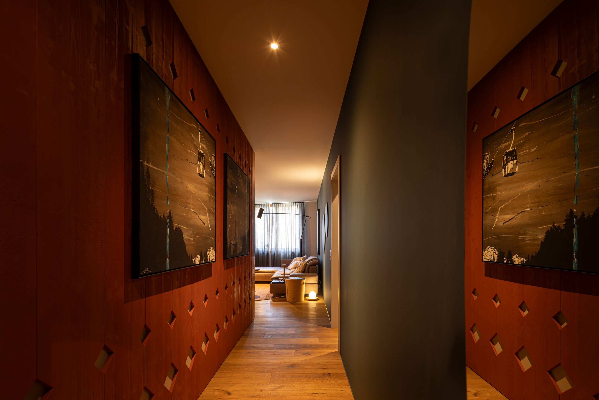 Für uns lag nahe, alpine Referenzen mit einer modernen Haltung zu kombinieren. Wir wollten mutige Farben auf warme Materialien treffen lassen, Kunst bewusst inszenieren und ihr den Raum geben, den sie braucht. Dabei sollte alles selbstverständlich wirken, nichts zufällig daherkommen.